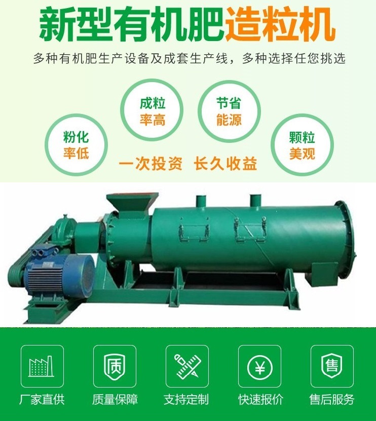 采用新型有機肥造粒機對物料進行制粒。本系統(tǒng)的作用是將粉碎配料混合完備后的物料制成顆粒。制粒適宜采用圓盤造粒機、攪齒造粒機、或者新型攪齒轉(zhuǎn)股三組合造粒機,其優(yōu)點是:原料適應(yīng)性廣,尤其適合有機物料,對原料密度、原料水分要求寬泛,造粒穩(wěn)定,顆粒成型率高,成品顆粒外觀均勻不易破碎;